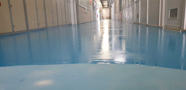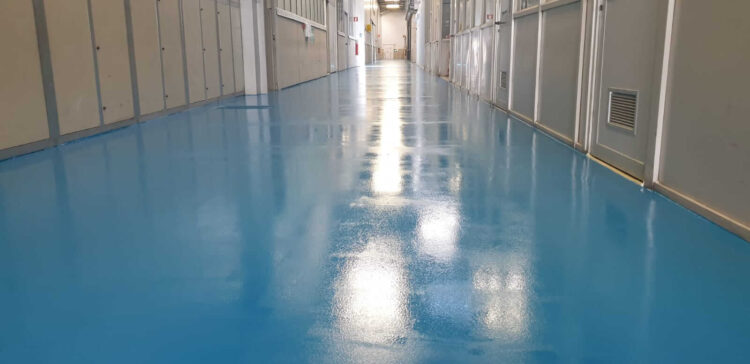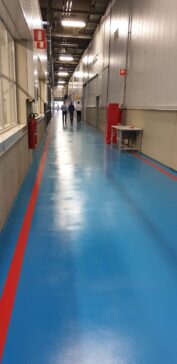 Massetto epossidico eseguito mediante primerizzazione sottofondo con primer idoneo a sottofondi contaminati da olio e applicazione di resina epossidica spatolata, per spessore idoneo al passaggio di muletti.